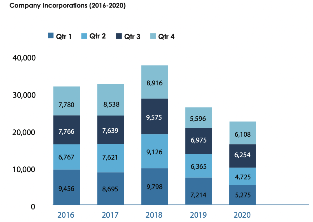 一、優(yōu)勢喪失,注冊BVI公司的人越來越少 4月14日,BVI金融管理局(Financial Services Commission,“FSC”)公布了2020年公司注冊方面的統(tǒng)計數(shù)據(jù)。 數(shù)據(jù)顯示(如下圖),BVI商業(yè)公司在2020年的注冊數(shù)量總計22,362家,創(chuàng)下2016-2020近五年來的“歷史新低”。特別地,相比2018年新設(shè)公司高達(dá)37,415家,2020年新設(shè)BVI公司的數(shù)量更是降幅高達(dá)40%?。。?/p>