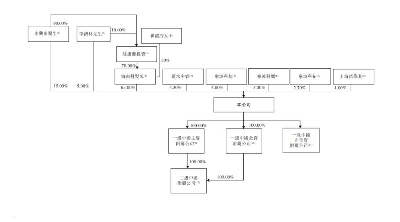 李興東醫(yī)生、崔韶芳女士、李濟林先生、海南科發(fā)源、絲康源投資、寧波科鷹及寧波科超合共持有本公司約92.00%的投票權(quán),為公司的控股股東集團。