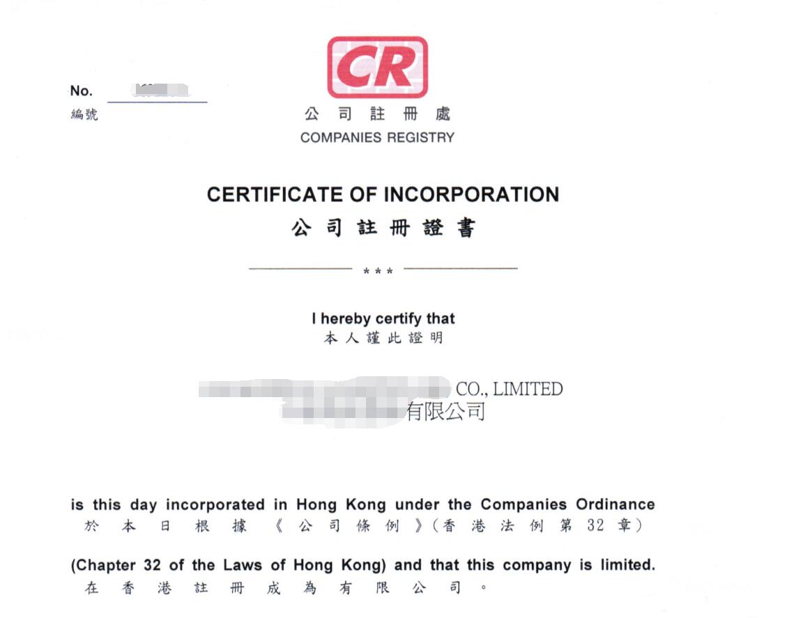- 公司名稱:該證書將列出香港公司的全名(英文名稱、中文名稱)。