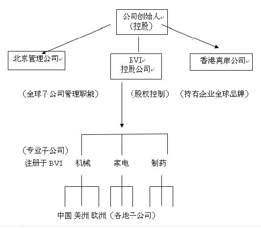 背景介紹:某民營(yíng)企業(yè)借助于創(chuàng)始人幾十年的創(chuàng)業(yè)和奮斗,在中國(guó)、歐洲和美洲分別建立了機(jī)械、電器、制藥等三大產(chǎn)品系列的許多公司,但公司與公司之間都是獨(dú)立法人,股東均系創(chuàng)始人及不同合作伙伴,且因不同地方公司需遵循不同法律制度,長(zhǎng)期以來集團(tuán)治理結(jié)構(gòu)不完善,資本運(yùn)作有較多困難,公司創(chuàng)始人對(duì)于整個(gè)投資的結(jié)構(gòu)安排非常不滿。