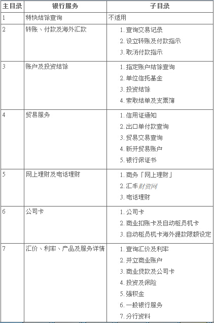 可通過商業(yè)電話理財取得以下相關(guān)資訊: