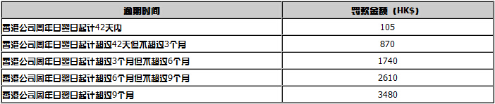周年日翌日起計(jì)超過3個(gè)月但不超過6個(gè)月,罰款HK$1740