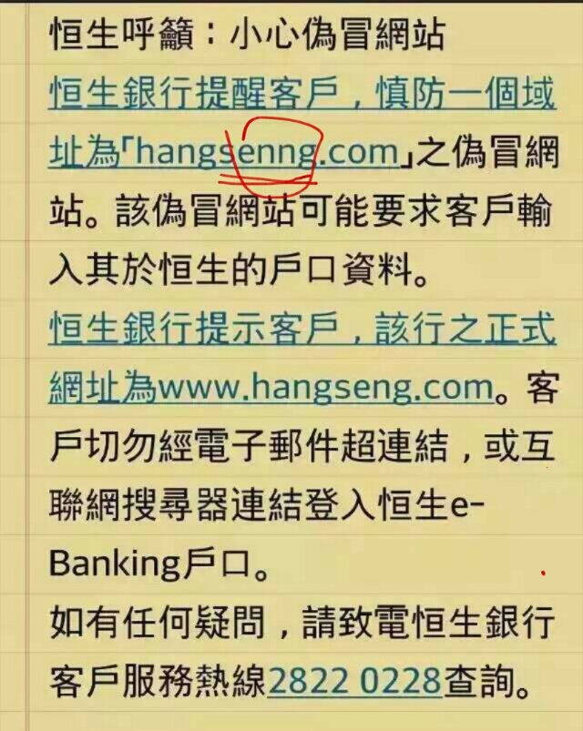 請注意,恒生假網站。