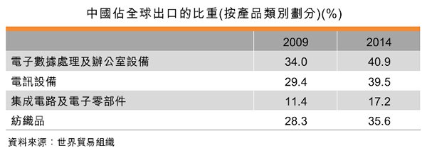 最后裝配工作由中國轉(zhuǎn)移至亞洲其他低成本產(chǎn)地,有助中國擴(kuò)大供進(jìn)一步加工用的原材料及半制成品的出口。根據(jù)中國的統(tǒng)計(jì)數(shù)字,粗略估算,2010至2015年,中國出口的原材料及半制成品復(fù)合年均增長9.1%,高于同期整體出口年均增長7.6%,以及消費(fèi)品年均增長8.3%的速度。