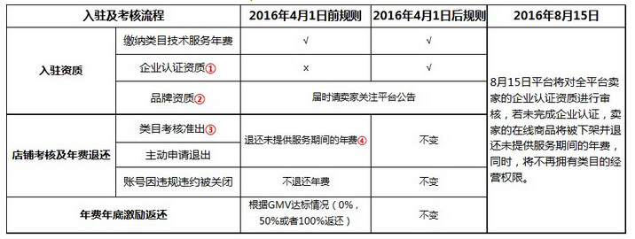 2、截止2016年8月15日,已入駐的老賣家若無法完成企業(yè)認證,賣家的在線商品將被下架并退還未提供服務(wù)期間的年費,同時,將不再擁有類目的經(jīng)營權(quán)限。