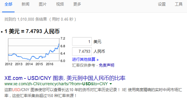 現(xiàn)在還是 1 美元 = 7.4793 人民幣