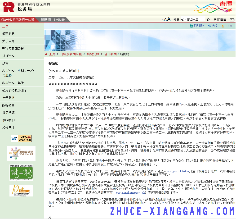 稅務局又發(fā)消息,敲定兩級制利得稅,2017-2018年度香港公司報稅稅表發(fā)放