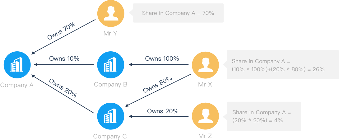 將公司股權(quán)層級(jí)及各層級(jí)實(shí)際占有的股權(quán)出資占比依次加權(quán)求總計(jì)算,篩選>=25%的自然人股東。