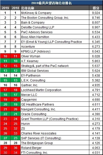 2019 全球咨詢公司排名 | Vault 版