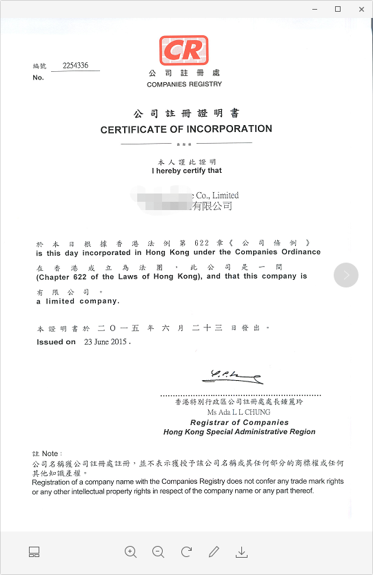 1、離岸公司的全套文件,香港公司包括公司注冊(cè)證CI,商業(yè)登記證BRC,法團(tuán)成立表格NNC或者最近一期周年申報(bào)表NAR,章程,