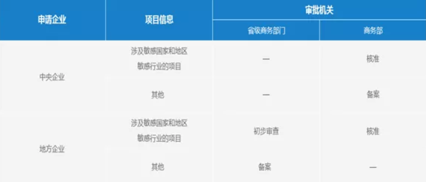 根據(jù)2014年9月6日頒布的《境外投資管理辦法》,商務部門對企業(yè)境外投資將實行備案或核準管理。