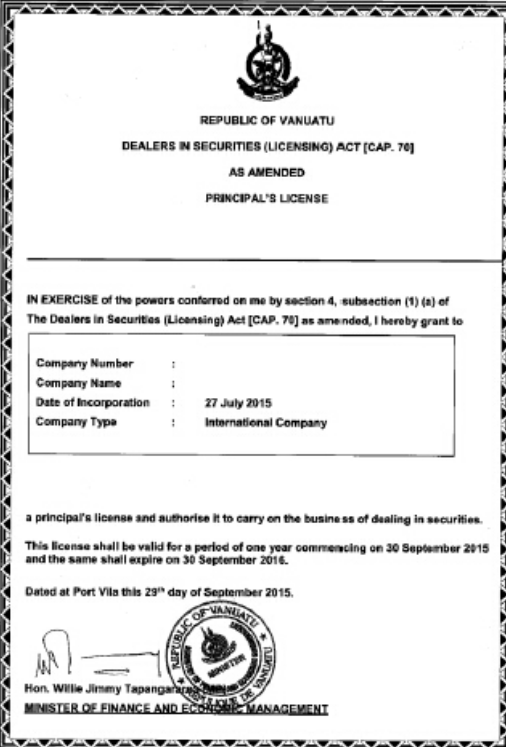 2.瓦努阿圖金融牌照是到手最快的外匯監(jiān)管牌照;