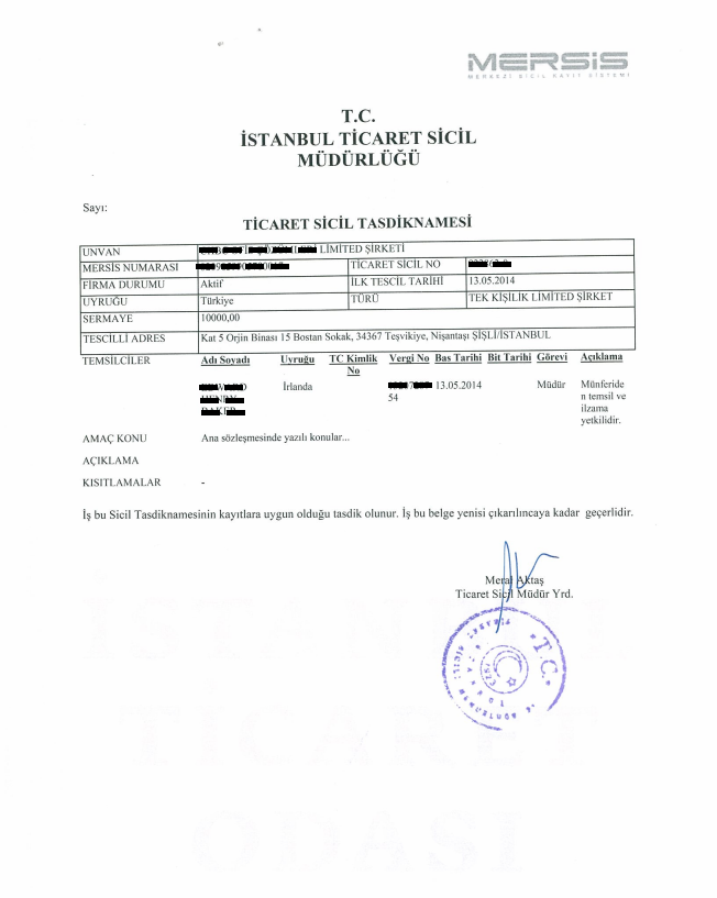 如果您想在土耳其成立公司,正式注冊(cè)程序包括以下初步注冊(cè)步驟: