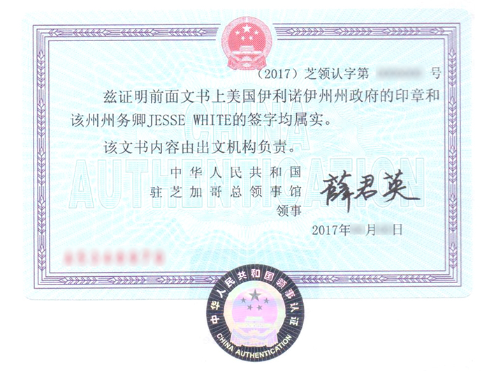 ——中國(guó)領(lǐng)事館再在州務(wù)卿認(rèn)證頁(yè)的背面貼個(gè)單面膠來證明州務(wù)卿的印章及官員某某某的簽字是真的,然后蓋章。