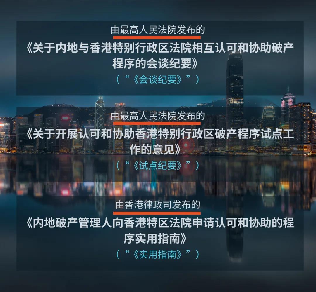 - 由最高人民法院發(fā)布的《關于開展認可和協(xié)助香港特別行政區(qū)破產程序試點工作的意見》(“《試點意見》”)