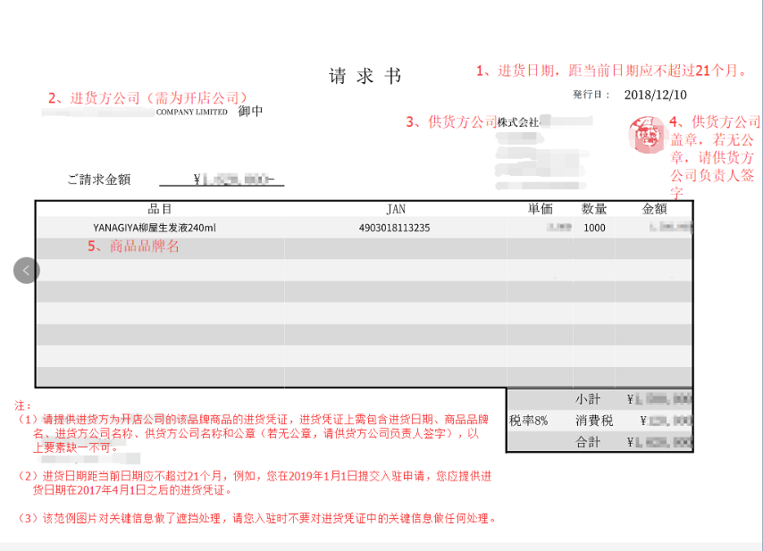 (3)該范例圖片對(duì)關(guān)鍵信息做了遮擋處理,請(qǐng)您入駐時(shí)不要對(duì)進(jìn)貨憑證中的關(guān)鍵信息做任何處理。