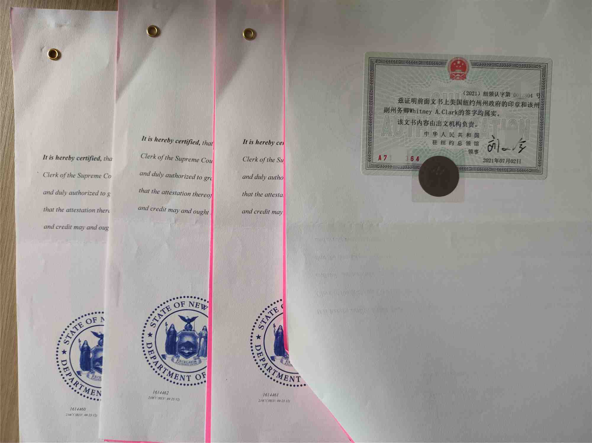 3、中國駐美國使領(lǐng)館認(rèn)證,主要是對文件上的簽字和蓋章進行確認(rèn),并再次簽字和蓋章