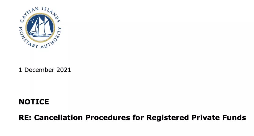 2021年12月1日,開(kāi)曼群島金融管理局(The Cayman Islands Monetary Authority,“CIMA”)發(fā)布了“針對(duì)注冊(cè)私募基金注銷程序的通知”(Re: Cancellation Procedures for Registered Private Funds)。