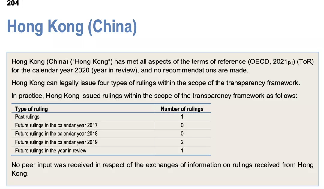 出人意料的是,中國澳門雖然在法律上符合了OECD的機制要求,但在2020年一年未發(fā)布任何與稅收信息交換相關(guān)的新規(guī)則,因此并未出現(xiàn)在2020年的同儕審查名單上。