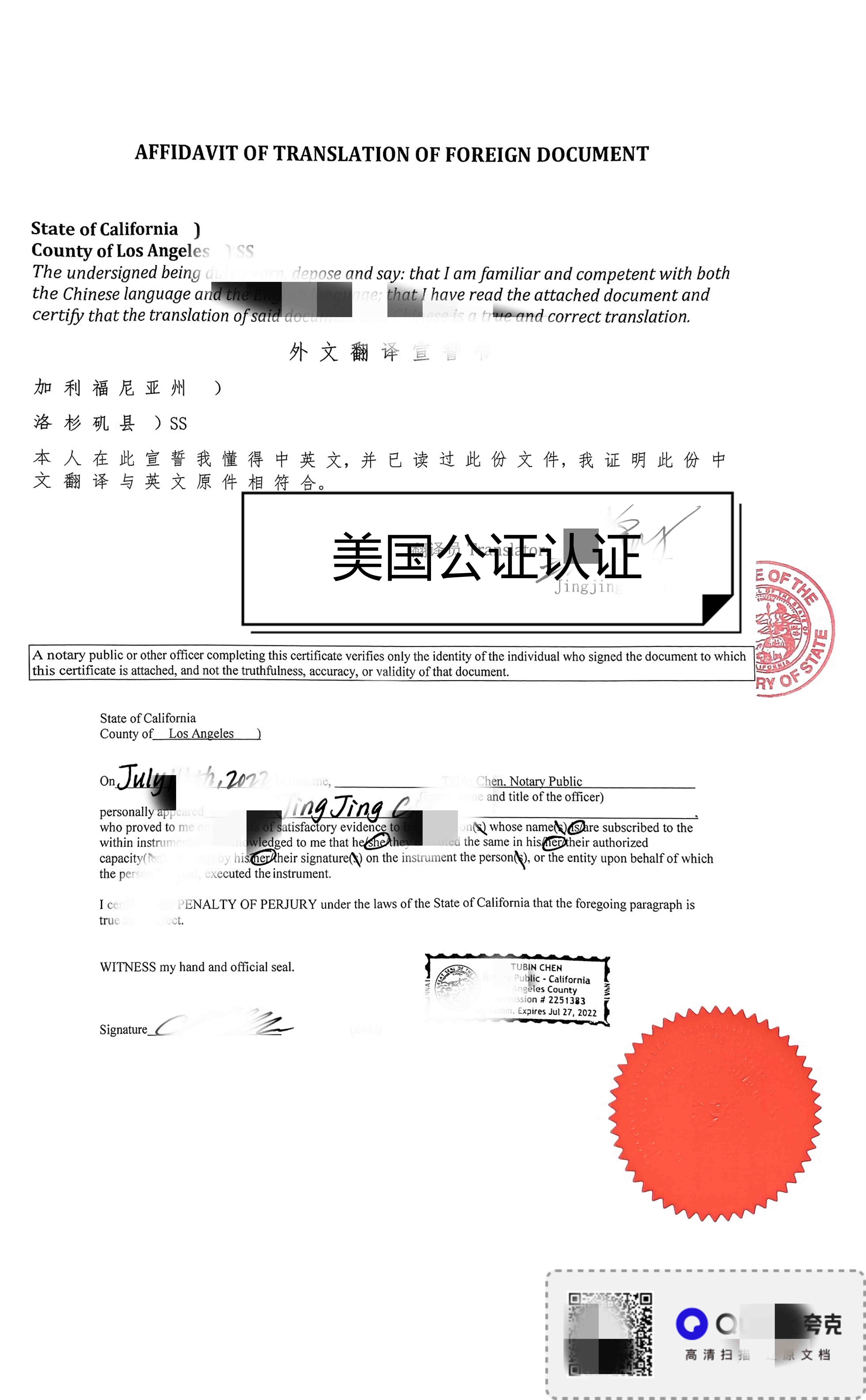 以上文件需要在美國辦理公證及中國領(lǐng)事館認(rèn)證,之后在中國使用前還需提供中文譯本。
