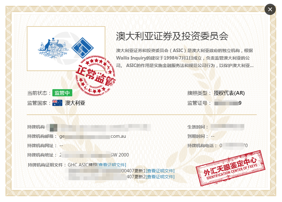 ASIC:全稱 Australian Securities and Investment Commission;
