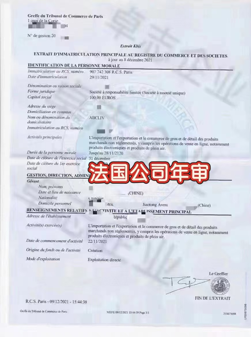 二、、法國公司年審所需材料