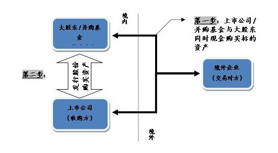 (三)方案3:大股東或并購基金與上市公司首先同時(shí)收購境外公司,再將剩余境外資產(chǎn)注入上市公司