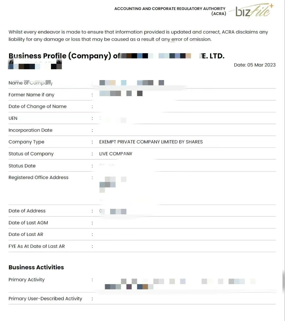 官方給出的資料只有兩份,CI和BizFile, CI相當(dāng)于營(yíng)業(yè)執(zhí)照,BizFile相當(dāng)于商業(yè)登記證答