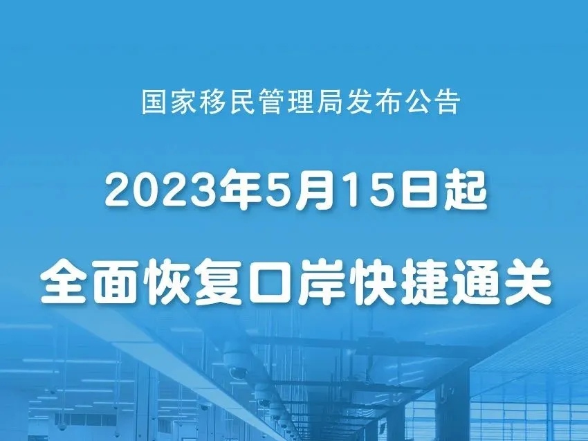 四、全面恢復口岸快捷通關(guān)。在1月8日恢復毗鄰港澳口岸邊檢快捷通關(guān)的基礎(chǔ)上,按照疫情前做法和標準要求,允許持中華人民共和國普通護照、往來港澳通行證、往來臺灣通行證、港澳居民來往內(nèi)地通行證、臺灣居民來往大陸通行證(5年有效)、一年多次有效出入境通行證的中國公民;持外國護照和外國人永久居留證、外國電子護照及6個月以上外國人居留許可的外國人;在定期國際航班上工作的中國籍機組人員和可免簽入境或已辦妥1年以上(含)乘務(wù)、任職簽證或居留證件的外國籍機組人員可經(jīng)邊檢快捷通道通行。