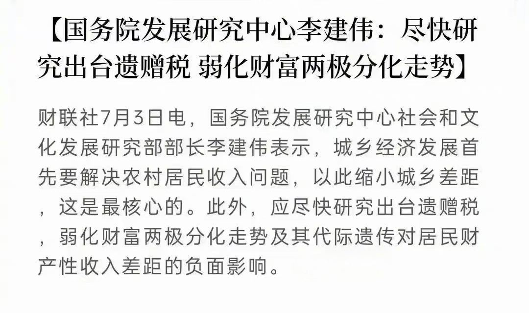 收遺產(chǎn)稅,有個核心,能不能做到全球征稅?如果做不到,富人是有各種渠道去到不收稅的地方,這個解決不了,出臺作用也不大。