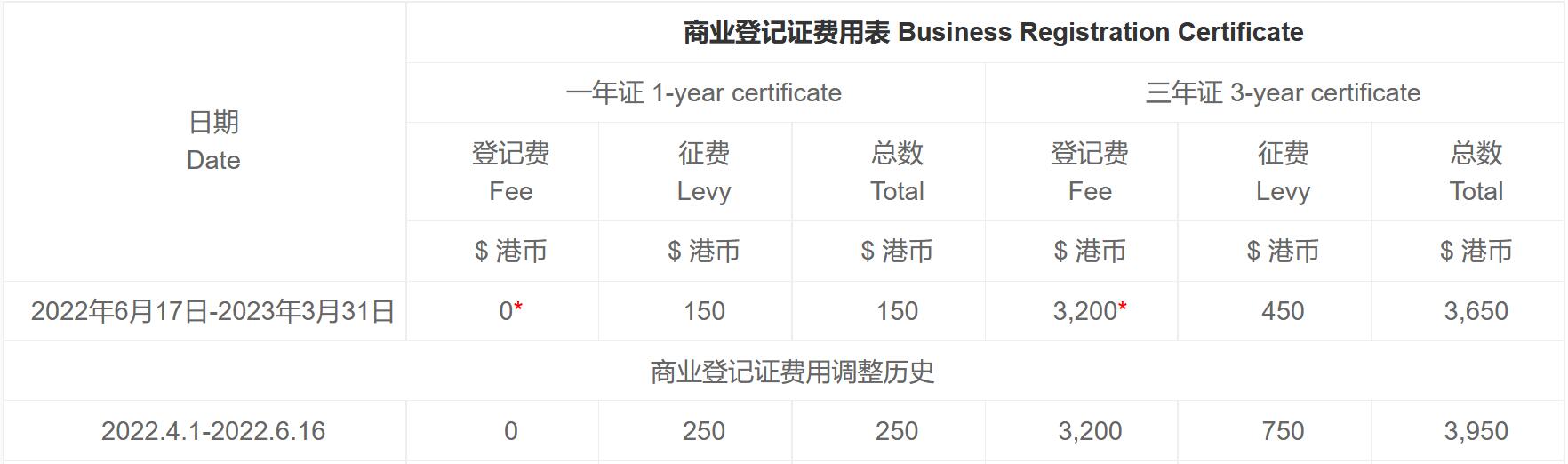 香港商業(yè)登記費(fèi)不是固定的,香港政府每年都有可能調(diào)整商業(yè)登記費(fèi)。最近一次調(diào)整漲價(jià)是今年4月1日,商業(yè)登記費(fèi)0元恢復(fù)到原來的2000元。答