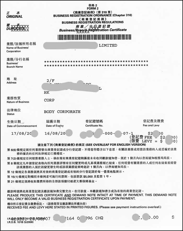 香港公司注冊證明書和商業(yè)登記證不見了補(bǔ)辦回來就可以了答