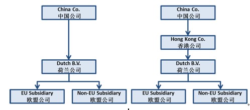 上圖為中國(guó)投資者直接從中國(guó)或間接經(jīng)由香港,通過(guò)荷蘭中間控股公司,在其他國(guó)家或地區(qū)投資的典型架構(gòu)。