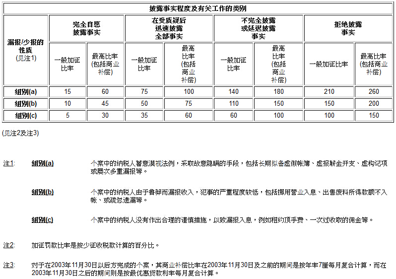 注2: 加征罰款比率是按少征收稅款計算的百分比。