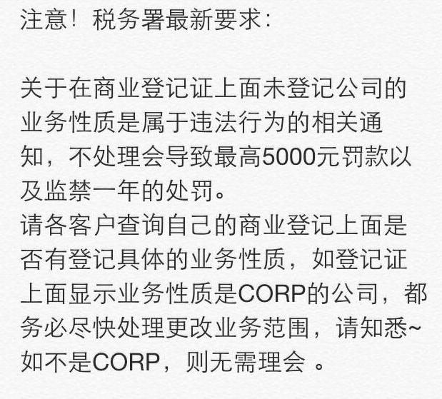 香港公司商業(yè)登記證上面顯示業(yè)務(wù)性質(zhì)是corp的公司是不是要罰款?