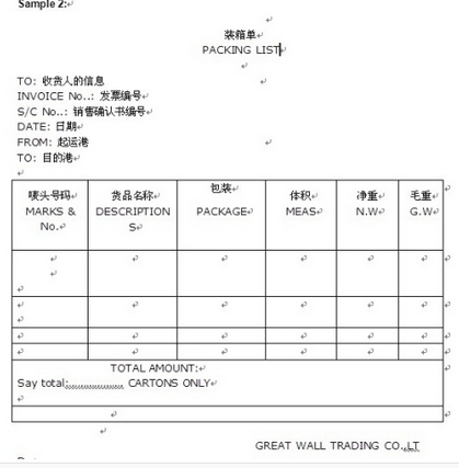 一、填寫示例其實格式的裝箱單大抵也是如此,自己拋磚引玉。