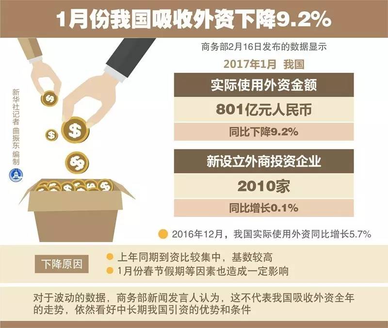 至于今年1月吸收外資下降,主要是受基數(shù)和春節(jié)假期等因素的影響,以1月單月的數(shù)據(jù)不足以判斷全年走勢(shì),更不足以判斷中國(guó)吸收外資的大勢(shì)。