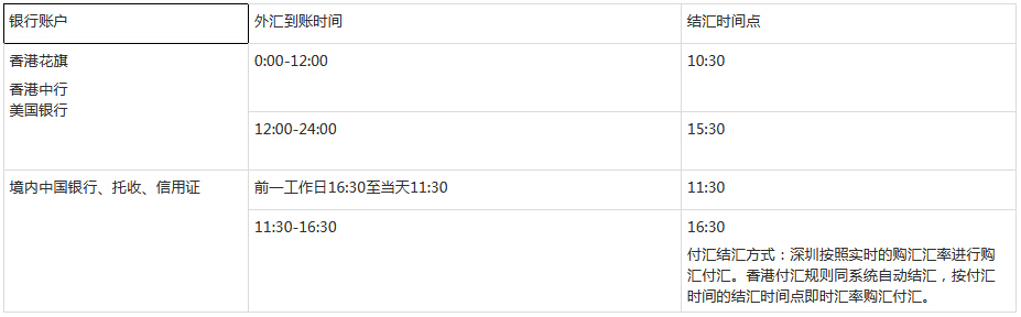 1.系統(tǒng)自動結(jié)匯:僅在法定工作日(不包括調(diào)休的工作日),一天僅結(jié)匯兩次,上午一次,下午一次,時(shí)間段內(nèi)到的外匯按結(jié)匯時(shí)間點(diǎn)的中行即時(shí)掛牌匯率即時(shí)結(jié)匯(若官網(wǎng)沒有整點(diǎn)匯率,系統(tǒng)會自動選擇整點(diǎn)前一個(gè)匯率結(jié)匯),如下:
