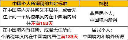 根據(jù)中國(guó)最新的個(gè)人所得稅修改案,個(gè)人是否應(yīng)繳納所得稅的判定標(biāo)準(zhǔn)如下: