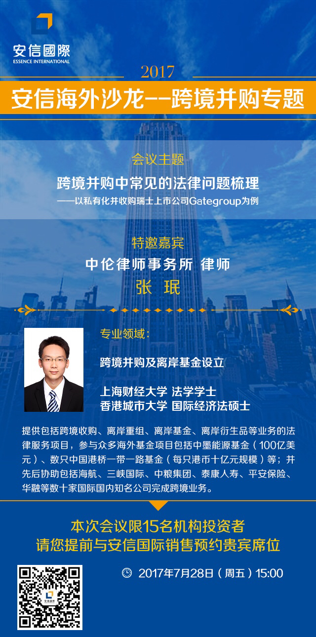 安信國(guó)際舉辦跨境并購(gòu)沙龍,開(kāi)放15個(gè)貴賓席位,歡迎各機(jī)構(gòu)報(bào)名。