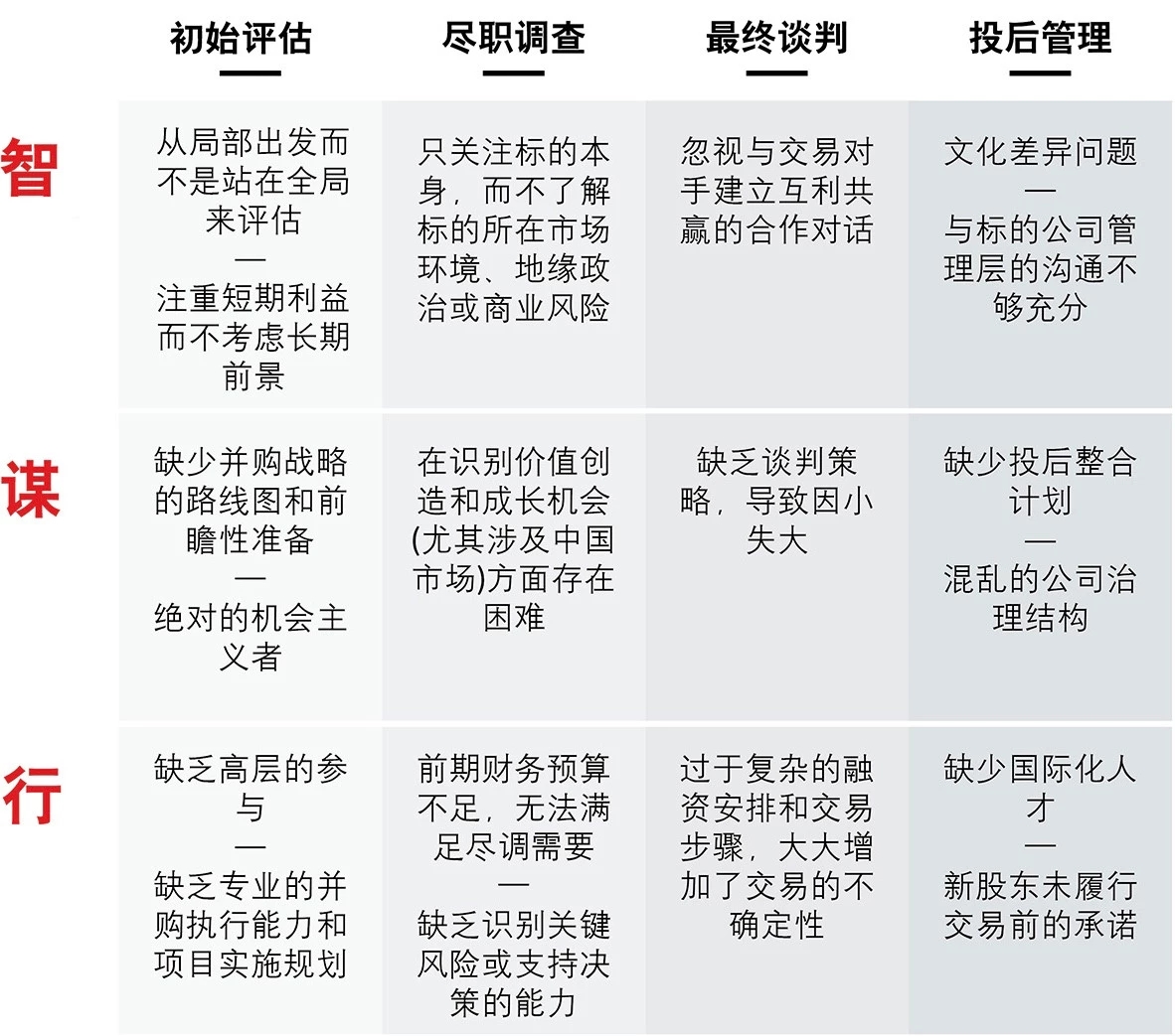 如今,中國企業(yè)在跨境并購中面臨的最大挑戰(zhàn)就是同時達(dá)成“智”、“謀”、“行”的目標(biāo)。無法有效執(zhí)行并購交易將成為中國企業(yè)國際化的重大發(fā)展瓶頸。