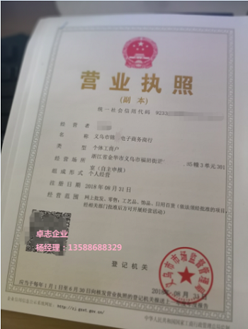 個(gè)體戶名稱:義烏市XX電子商務(wù)商行(因核名重合率太高,此名稱基本上都是工商隨機(jī),不影響結(jié)匯)
