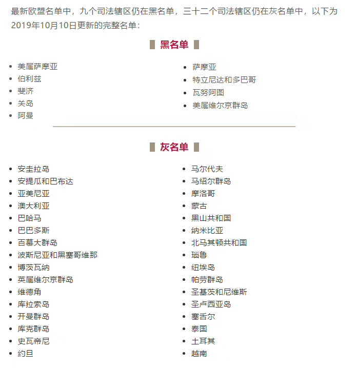 10月5日,歐盟公布了2021年的第二份“稅務(wù)不合作司法管轄區(qū)名單”(EU list of non-cooperative jurisdictions for tax purposes,即“黑名單”),宣布將安圭拉、多米尼加和塞舌爾從歐盟不合作名單中刪除。 答