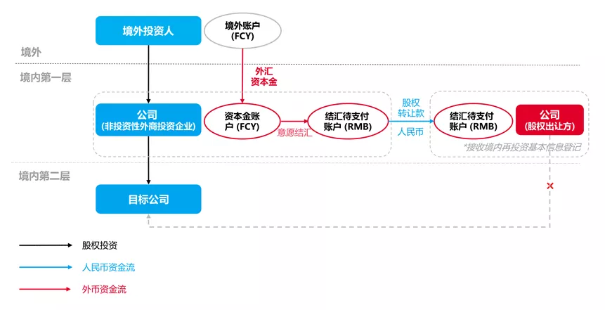 在利用結匯人民幣資金以股權并購的方式進行境內再投資的情形下,就外商投資性公司而言,資本金應當匯入股權出讓方的人民幣結算賬戶且資金使用不受限制,賣方無須進行接收境內再投資基本信息登記;而就非投資性外商投資企業(yè)而言,資本金應當匯入股權出讓方的結匯待支付賬戶,由股權出讓方按照結匯待支付賬戶的支出范圍進行使用,賣方還應辦理接收境內再投資基本信息登記。