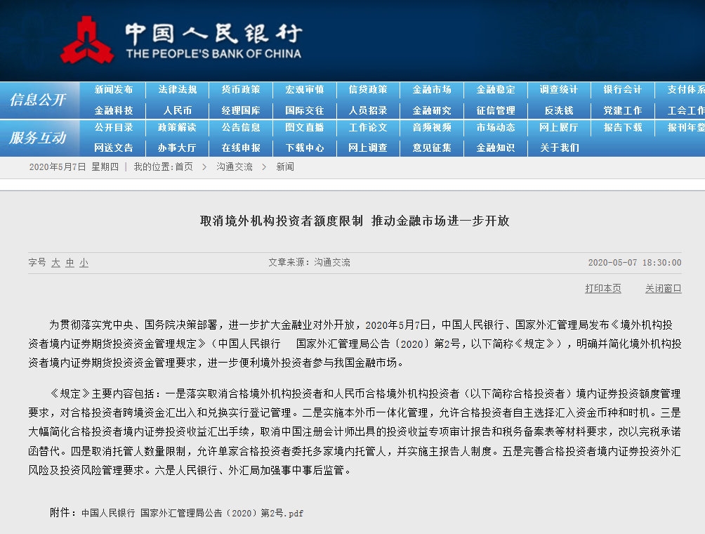 重大消息,央行:取消境外機構(gòu)投資者額度限制
