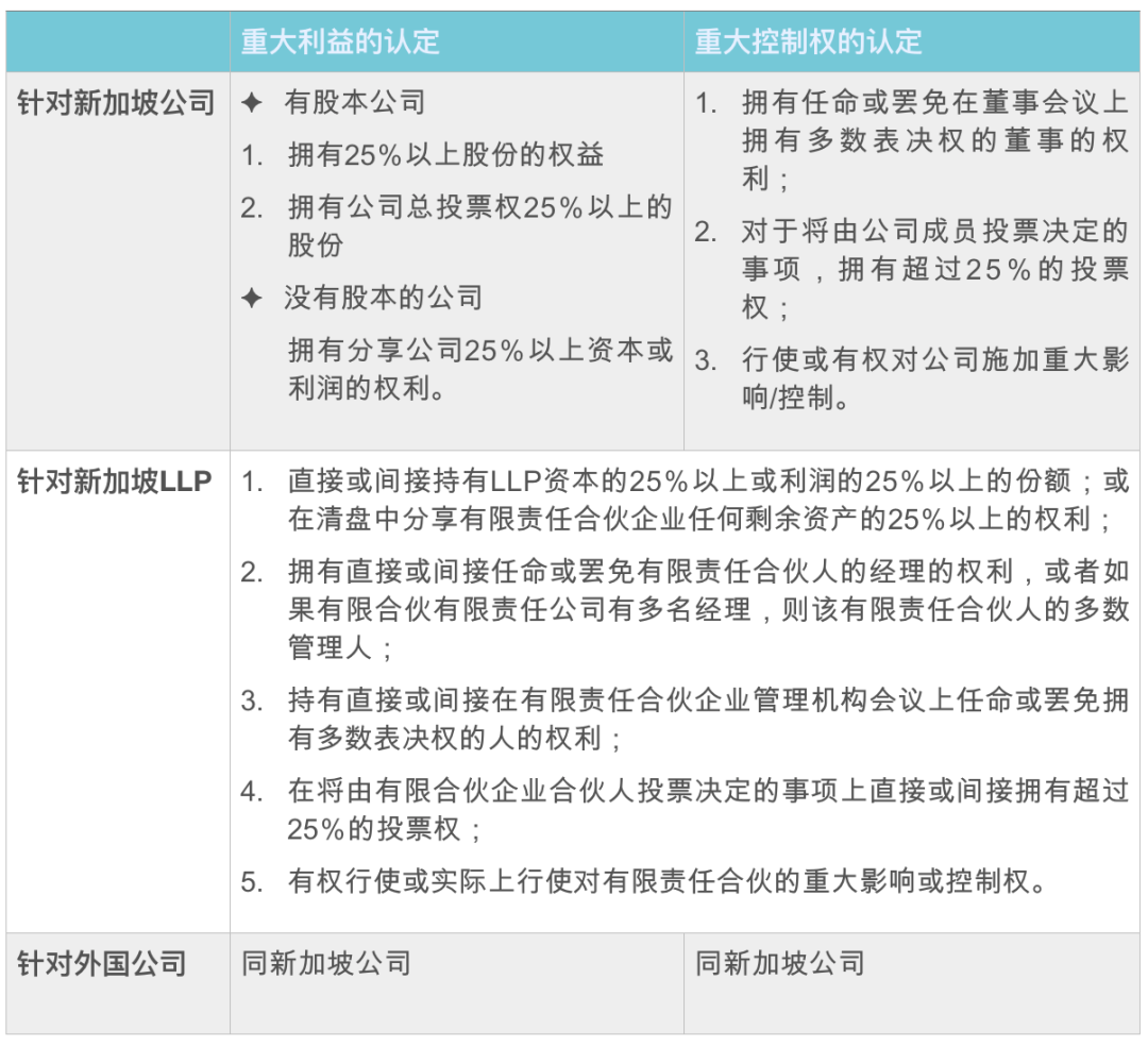 自2020年7月30日起,新加坡公司、外國公司新加坡分公司及LLP(除非得到豁免)須在其注冊地址或授權(quán)存檔代理的辦公室存檔「注冊控制人信息名冊(register of registrable controller,“RORC”,即通常所說的“受益所有人”)。