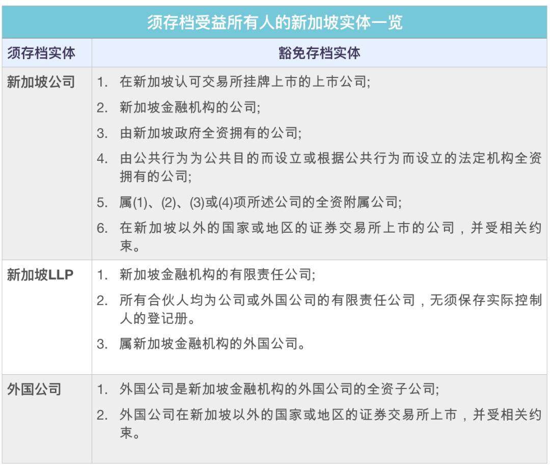 此外,該等實體還須在ACRA「中央登記冊」(The Central Non-public Register)保存受益所有人相應信息