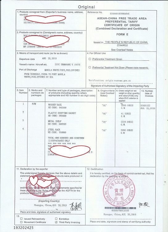 中國東盟自由貿(mào)易區(qū)優(yōu)惠原產(chǎn)地證明書,簡稱《FORM E 證書》或《東盟證書》,英文名稱為《ASEAN-CHINA FREE TRADE AREA PREFERENTIAL TARIFF CERTIFICATE OF ORIGINFORM E》。FORM E 證書的簽發(fā),限于已公布的《貨物貿(mào)易協(xié)定》項(xiàng)下給予關(guān)稅優(yōu)惠的產(chǎn)品,這些產(chǎn)品必須符合《中國——東盟自由貿(mào)易區(qū)原產(chǎn)地規(guī)則》。證書內(nèi)容以英文填寫。