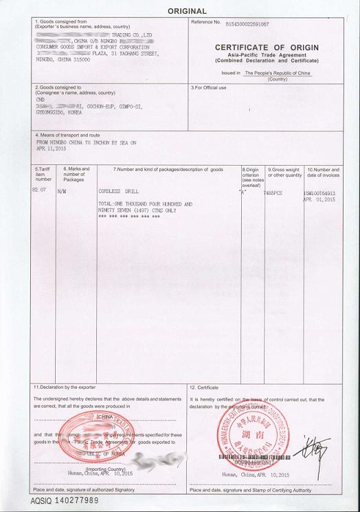 一般原產地證明書(C.O.)是由各地貿促會(CCPIT)簽發(fā)的。貿促會是中國國際貿易促進委員會(China Council for Promotion of International Trade)的簡稱,與中國國際商會是同一領導機構下的兩種名稱。貿促會是一個全國性的組織,在各地由分會,所簽發(fā)的產地證使用自己的格式并統(tǒng)一編號,它簽發(fā)的產地證在國際上由一定的聲譽。
