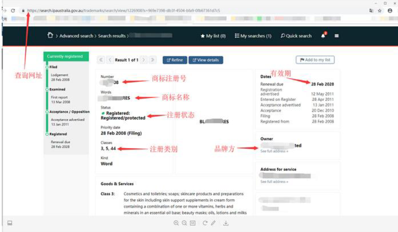 商家若無(wú)境外注冊(cè)的商標(biāo)注冊(cè)證書(shū),可上傳所經(jīng)營(yíng)商標(biāo)在境外商標(biāo)注冊(cè)官網(wǎng)上查詢的詳細(xì)信息截圖,截圖需含有查詢網(wǎng)址、商標(biāo)注冊(cè)號(hào)、品牌名、注冊(cè)狀態(tài)、商標(biāo)注冊(cè)類(lèi)別、商標(biāo)持有人、商標(biāo)有效期。